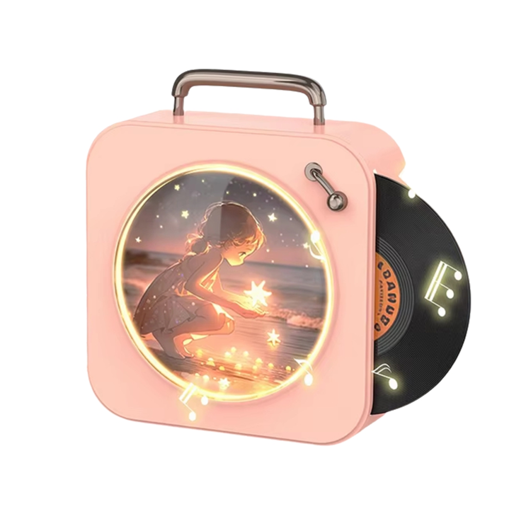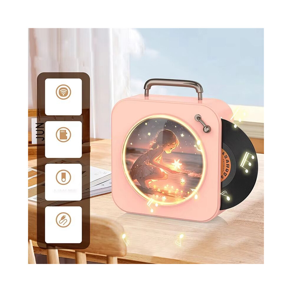 Vintage Bluetooth Vinyl Record Small Stereo Home CD Player Pink