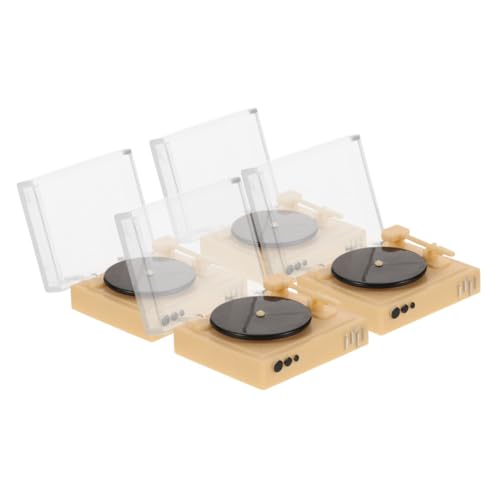 SUPVOX 4pcs Miniature Dollhouse CD Player Model DIY Tiny Record Player for Bedroom and Living Authentic Phonograph Dollhouse Furniture Decoration for Collectors and Miniature Enthusiasts