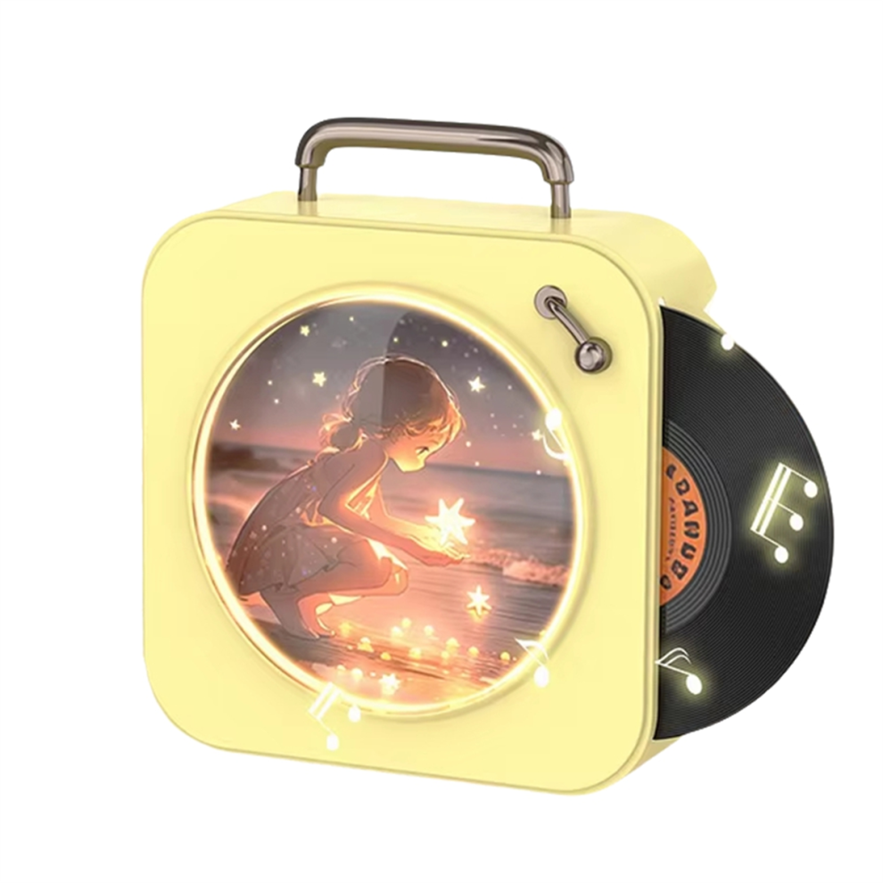 Vintage Bluetooth Vinyl Record Small Stereo Home CD Player Yellow