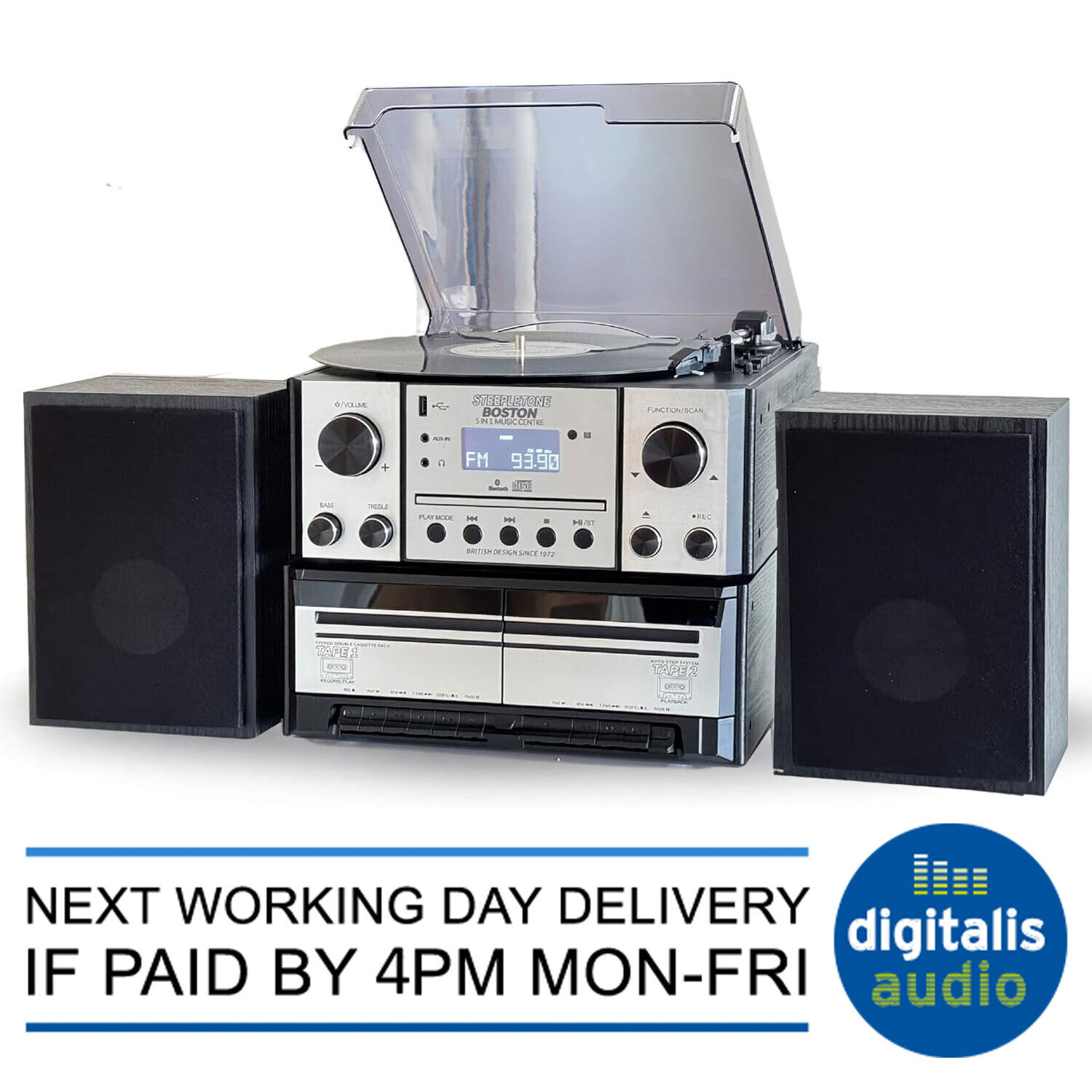 Steepletone Boston 5 in 1 Music Centre Bluetooth Record Player CD Cassette Black