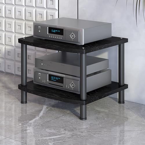 RGZFYH HIFI Stand Stereo Rack AV Media Stand with Shock-Absorbing Feet HIFI Stand Wooden CD Record Player Stereo Receiver AV Equipment Cabinet Display Rack Living room(Nero,2 Tier)