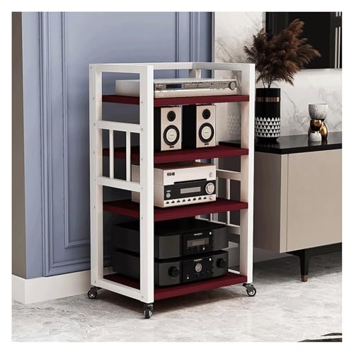 RGZFYH HIFI Stand AV Media Stand Adjustable Media Storage Shelves CD Record Player Stereo Component Rack Cabinet Modern Audio Rack Tower Compatible with Home Studio Living room(Rot,5 Tier)