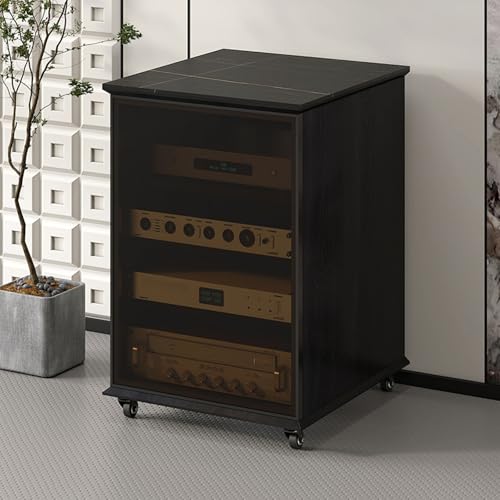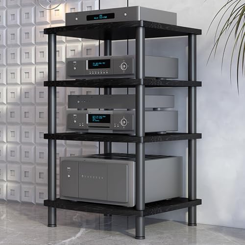 RGZFYH HIFI Stand AV Media Stand Adjustable Media Storage Shelves CD Record Player Stereo Component Rack Cabinet Modern Audio Rack Tower Compatible with Home Studio Living room(Nero,4 Tier)