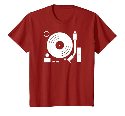 DJ Turntable Record Deck T-Shirt, Youth, Cranberry Red, Medium