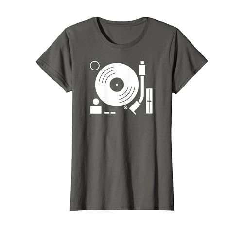 DJ Turntable Record Deck T-Shirt, Women, Asphalt Grey, Large