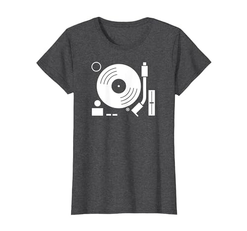 DJ Turntable Record Deck T-Shirt, Women, Dark Heather Grey, Small