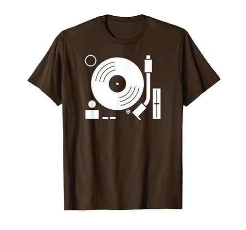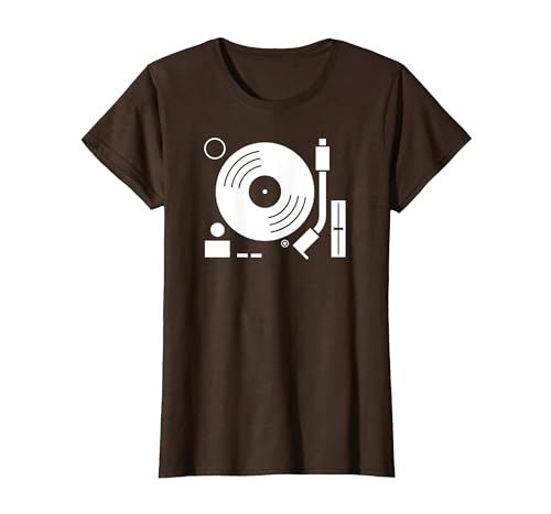 DJ Turntable Record Deck T-Shirt, Women, Brown, Large