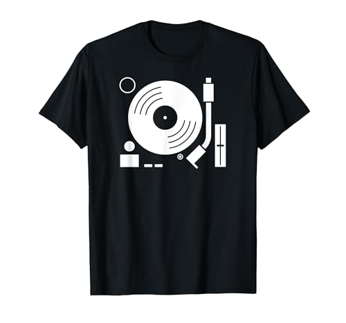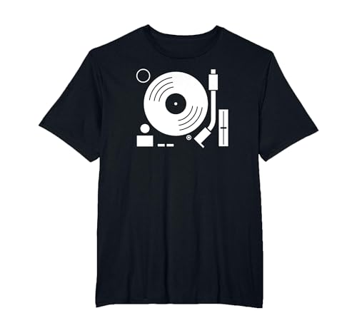 DJ Turntable Record Deck T-Shirt, Men, Black, Large