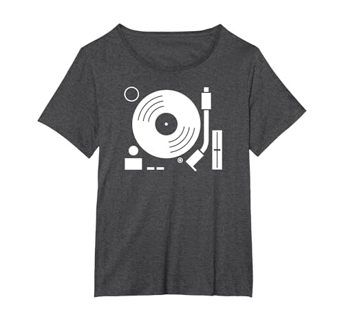 DJ Turntable Record Deck T-Shirt, Women's Plus, Dark Heather Grey, 4X