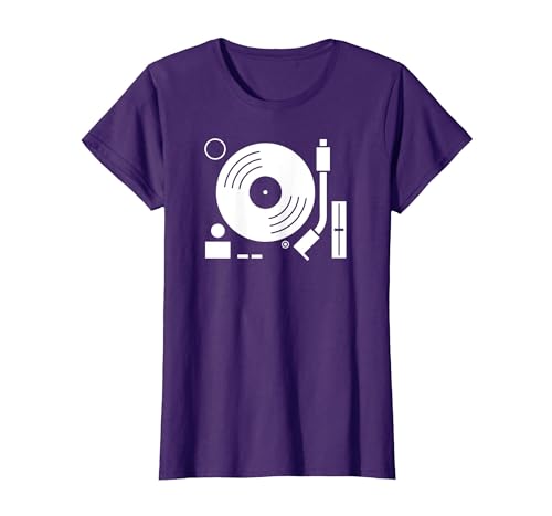 DJ Turntable Record Deck T-Shirt, Women, Purple, Large