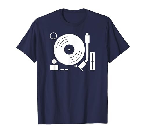 DJ Turntable Record Deck T-Shirt, Men, Navy Blue, Small