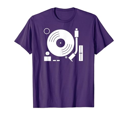 DJ Turntable Record Deck T-Shirt, Men, Purple, Large