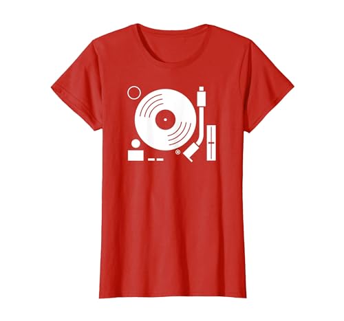 DJ Turntable Record Deck T-Shirt, Women, Red, Small
