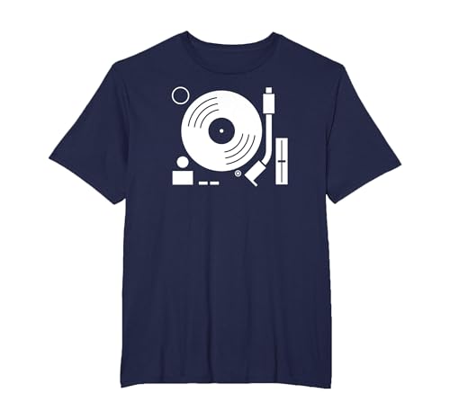DJ Turntable Record Deck T-Shirt, Men's Big and Tall, Navy Blue, 5X Tall