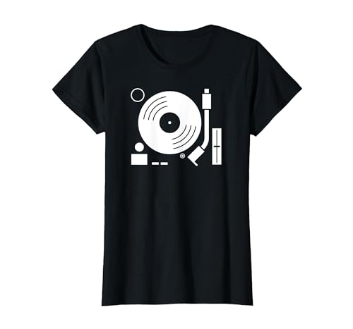 DJ Turntable Record Deck T-Shirt, Women, Black, Large