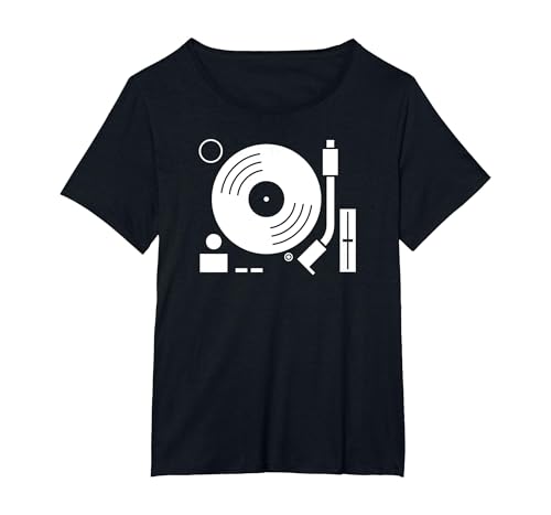DJ Turntable Record Deck T-Shirt, Women's Plus, Black, 6X