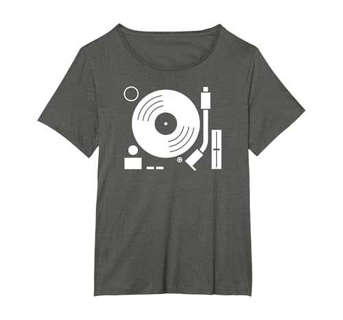 DJ Turntable Record Deck T-Shirt, Women's Plus, Asphalt Grey, 6X