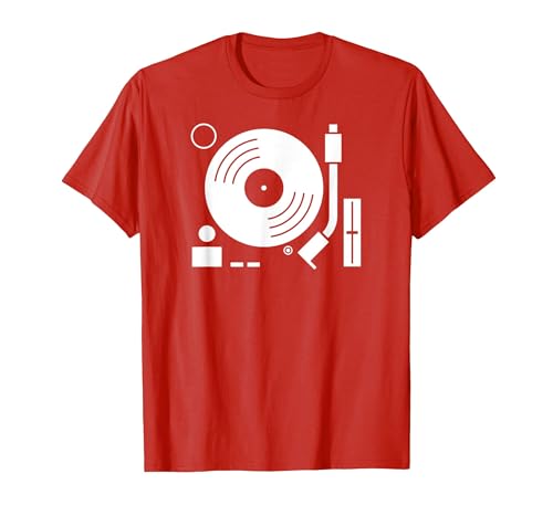 DJ Turntable Record Deck T-Shirt, Men, Red, Medium