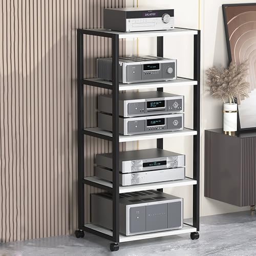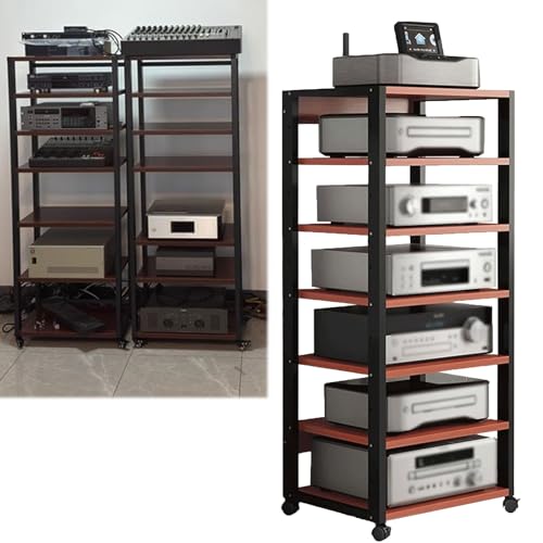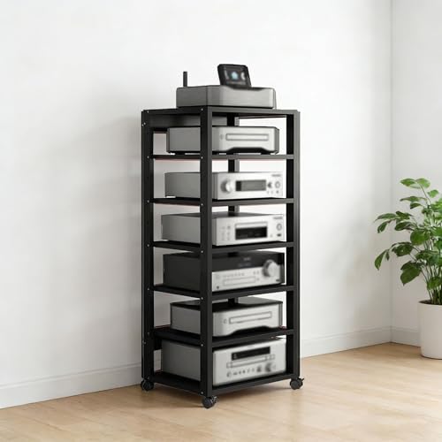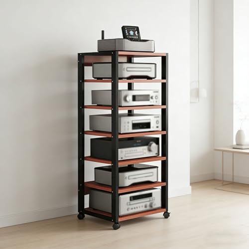 RGZFYH HIFI Stand 6 Tier AV Media Stand with Wheels Adjustable Record Player DVD CD Audio Rack Tower Holder Modern Open Stereo Cabinet for Living Room Living room(Brown)