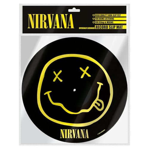 Nirvana Smiley Turntable Slipmat, Official Licensed Vinyl Record Player Mat, Classic Grunge Band Artwork DJ Slip Mat for LP Turntables, Record Player Accessory, Music Fan Gift