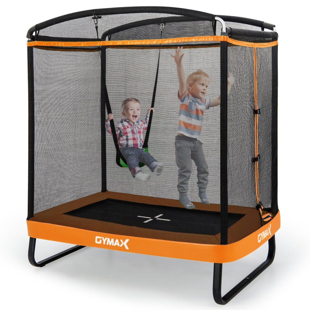 COSTWAY 2 in 1 Kids Trampoline, 6FT Toddler Trampolines with Swing and Enclosure Safety Net, Rectangle Trampoline for Outdoor (Black + Orange)