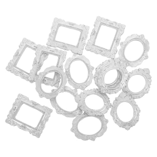 Gatuida 30pcs Dollhouse Miniatures Picture Frames: Tiny Vintage Silver Oval Rectangle Resin Photo Frames For Craft Mini Wall Decor Antique Jewelry Earring Ornament Display