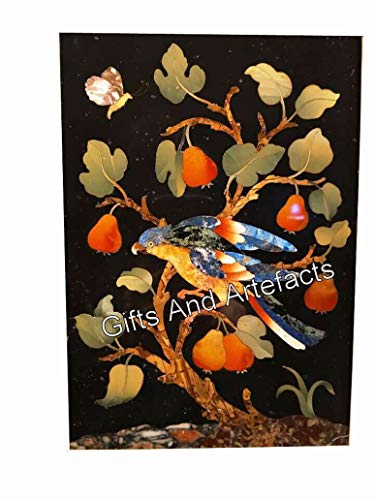 Bird Pattern Inlay Work Coffee Table Top for Hallway & Living Room Decor | 12 x 18 Inches Rectangle Black Marble Patio Side Table | Antique Marble Wall Decor Art