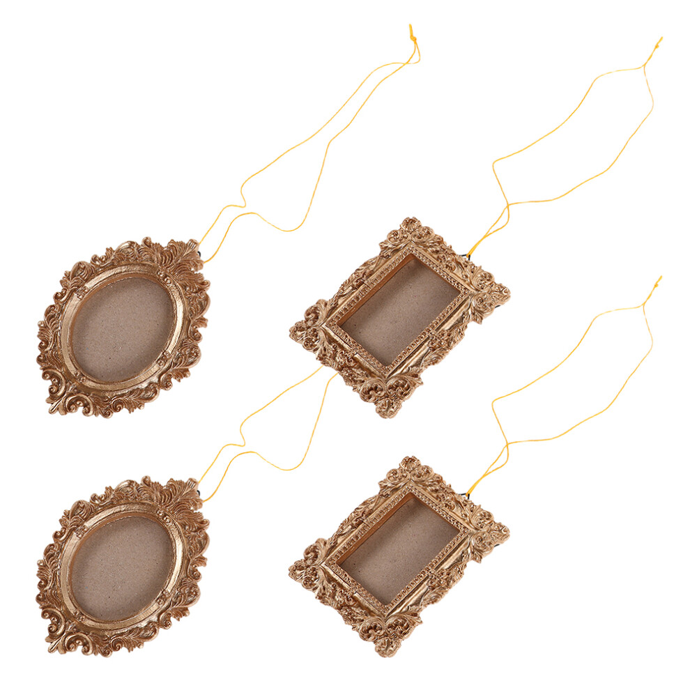 Gatuida 30pcs Dollhouse Miniatures Picture Frames: Tiny Vintage Gold Oval Rectangle Resin Photo Frames For Craft Mini Wall Decor Antique Earring Ornament Jewelry Display