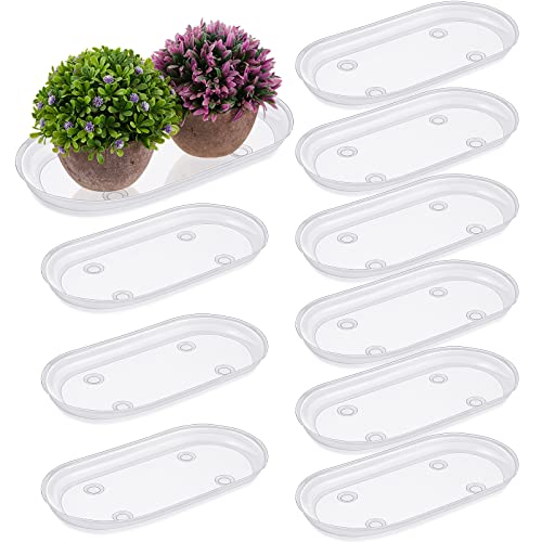 Juexica 10 Pcs Plastic Plant Saucer Rectangular Plant Drip Trays Plastic Oval Window Sill Plant Tray for Indoors Flower Pots for Window Sills and Window Shelf(12 x 6 Inch)