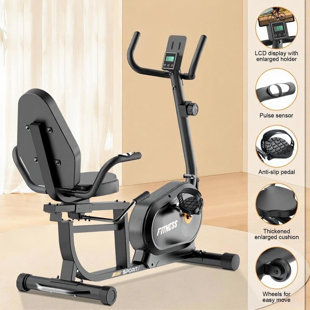 Recumbent Exercise Bike Recovery Exerciser 8-Level Magnetic Resistance Stationary Bike Pad Holder LCD Monitor Indoor Cardio Black 110kg