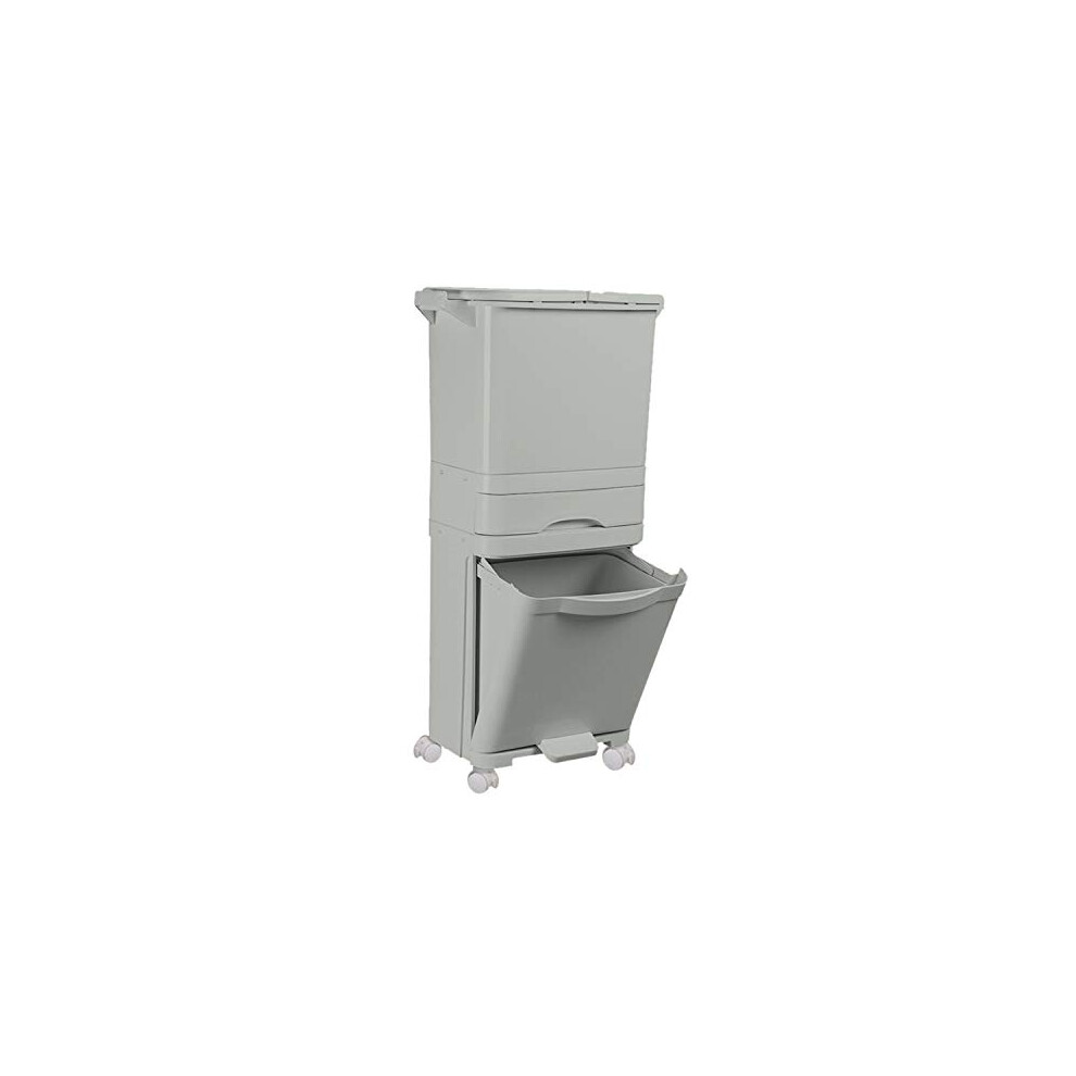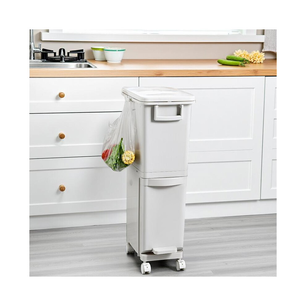 (Grey, 29 x 21 x 33cm) 15 Liter Wet and Dry Dual Trash Can Recycling Waste Bin for Kitchen