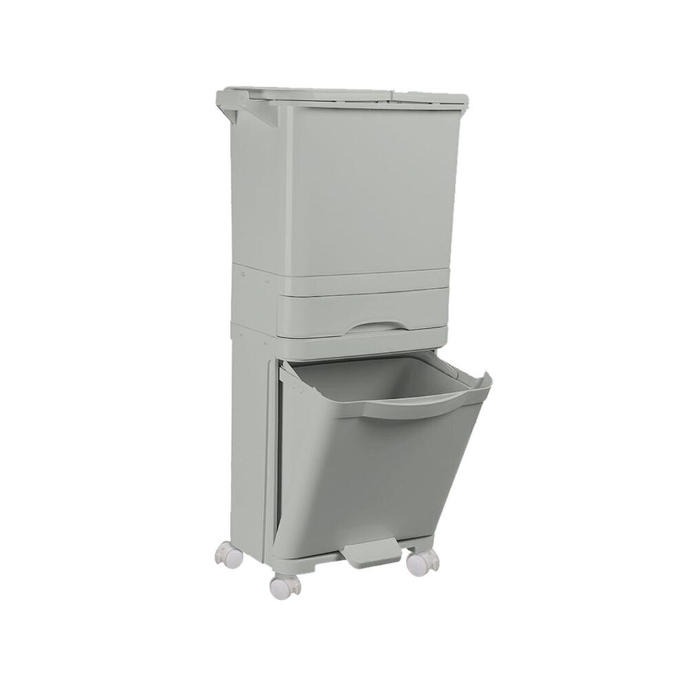 (Grey, 29 x 21 x 33cm) 15 Liter Dual Wet and Dry Trash Can Recycling Waste Bin for Kitchen