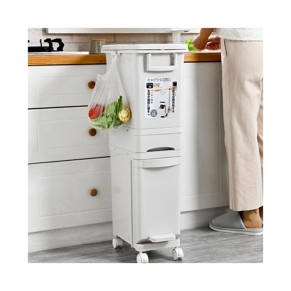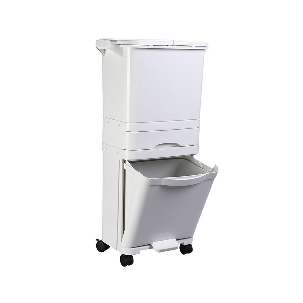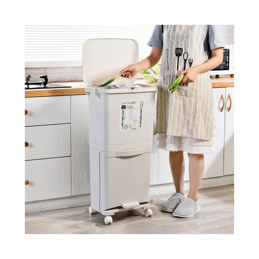 (White, 29 x 21 x 33cm) 15 Liter Wet and Dry Dual Trash Can Recycling Waste Bin for Kitchen