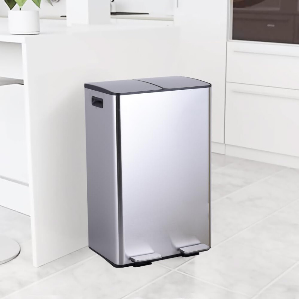 (60L Silver) 60L Recycling Bin 2 x 30L Compartment Waste Recycling Bin For Home Kitchen Steel
