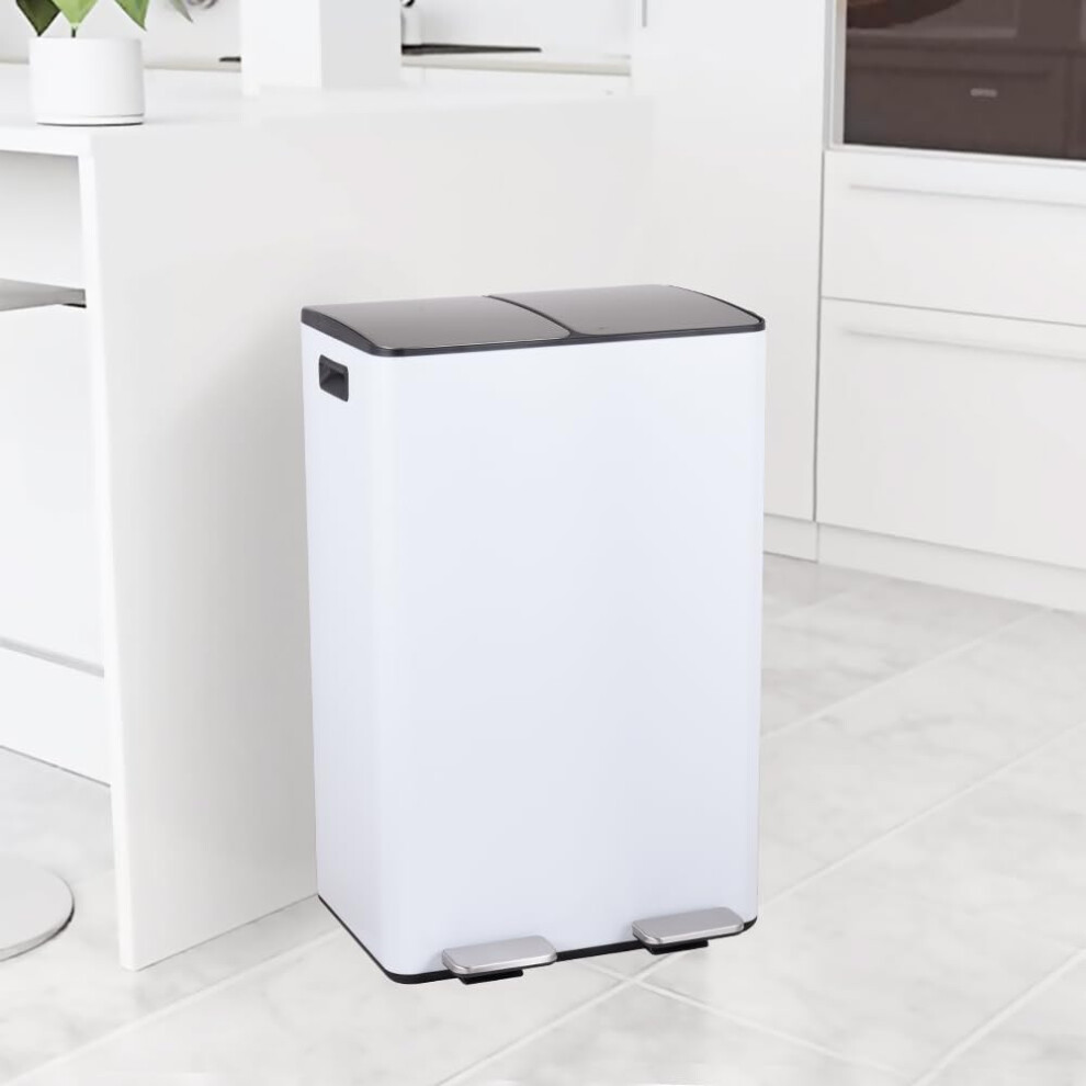 (60L White) 60L Recycling Bin 2 x 30L Compartment Waste Recycling Bin For Home Kitchen Steel
