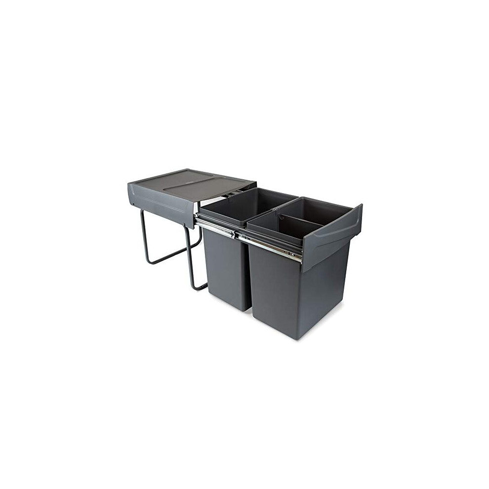 Emuca - Waste containers with lower fixing for kitchen, 2 removable 15L recycling bins, total capacity 30 L (2 x 15 L), steel and plastic, anthracite grey.