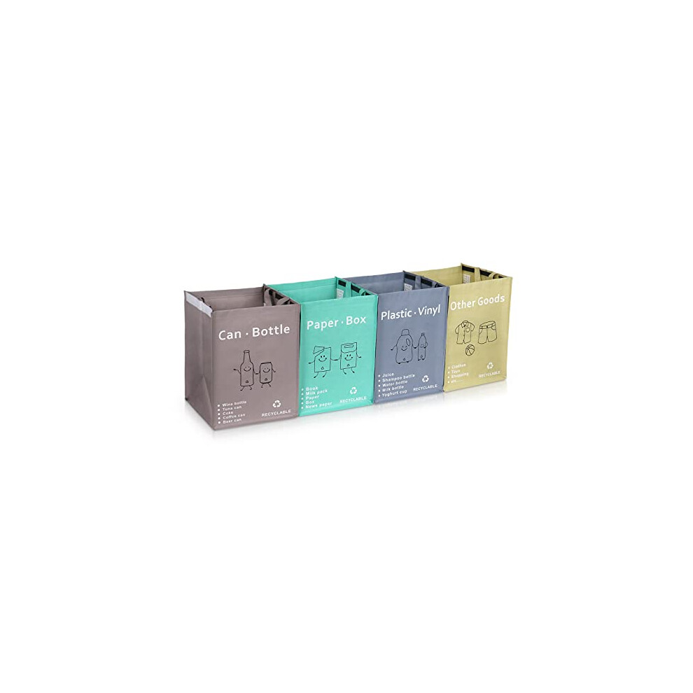 4 Packs Recycling Bags with handle Separate Sorting Organizer Woven waste Bins bag Waterproof for Kitchen Home Office Heavy Duty Reusable Storage,Easy