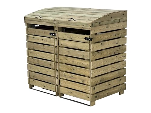 BinBreeze wheelie bin storage unit, wooden outdoor cover, recycling box storage (Double, without shelf)