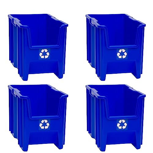 ReadySpace Commercial Industrial Heavy Duty Stackable Open-Front Recycling Bin Box Containers, 7 Gallon, 4 Pack, Blue