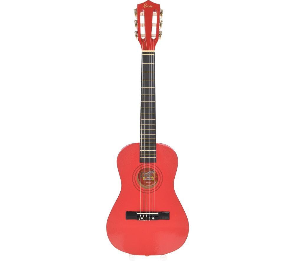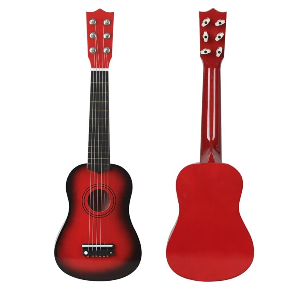 21 Inch Red Wooden Kids Acoustic Guitar with Clear Balanced Sound and Durable Metal Tuners