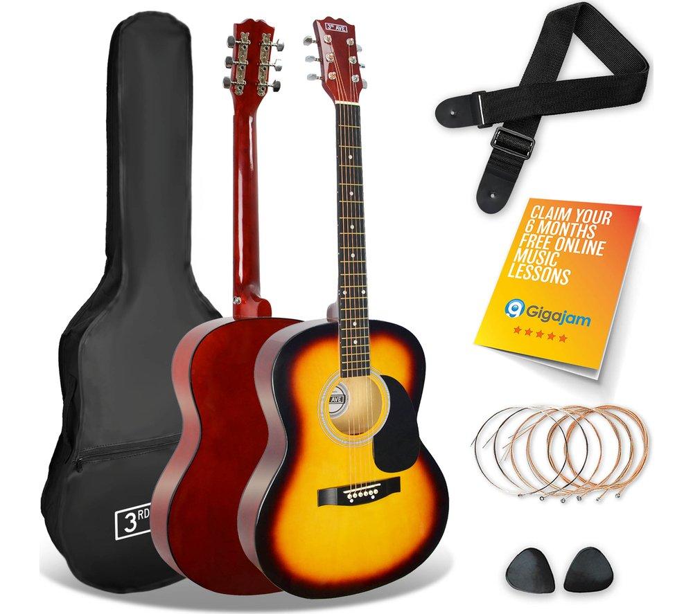 3RD AVENUE Full Size 4/4 Acoustic Guitar Ultimate Bundle - Sunburst, Yellow,Red
