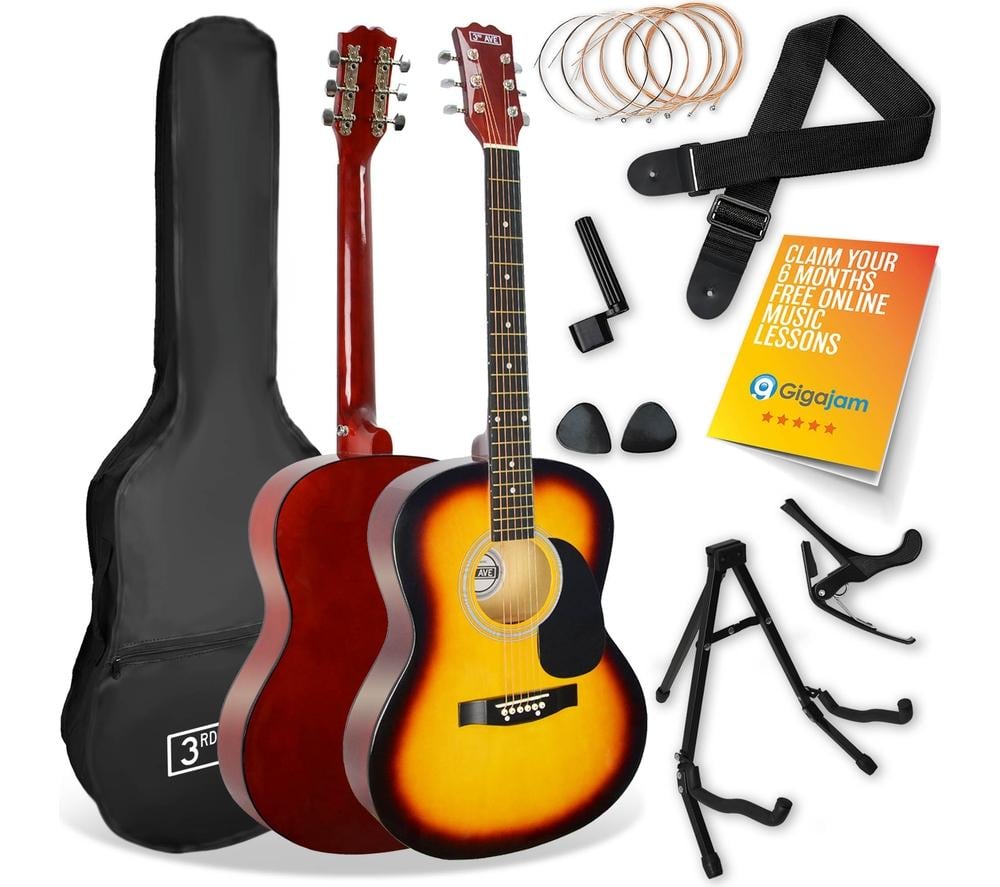 3RD AVENUE Full Size 4/4 Acoustic Guitar Bundle - Sunburst, Brown,Yellow,Red