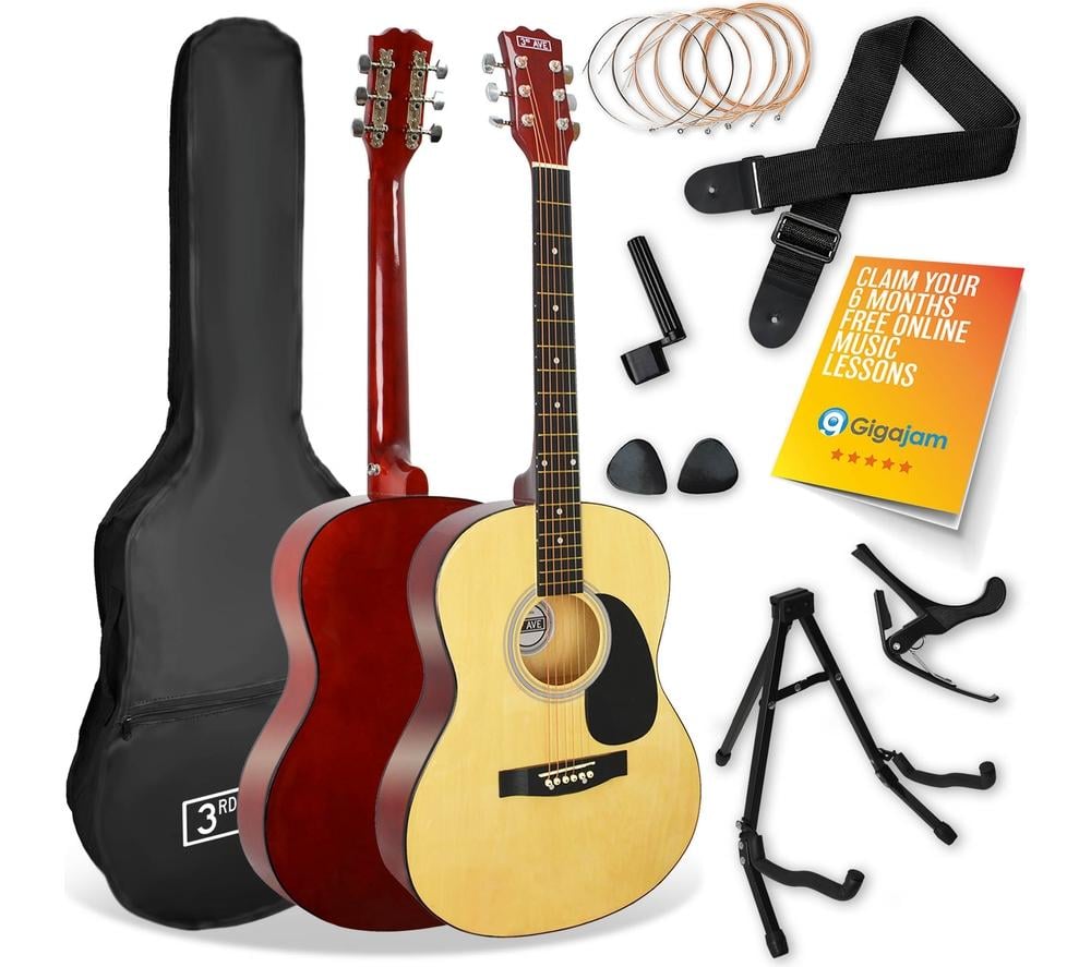 3RD AVENUE Full Size 4/4 Acoustic Guitar Ultimate Bundle - Natural, Yellow,Red
