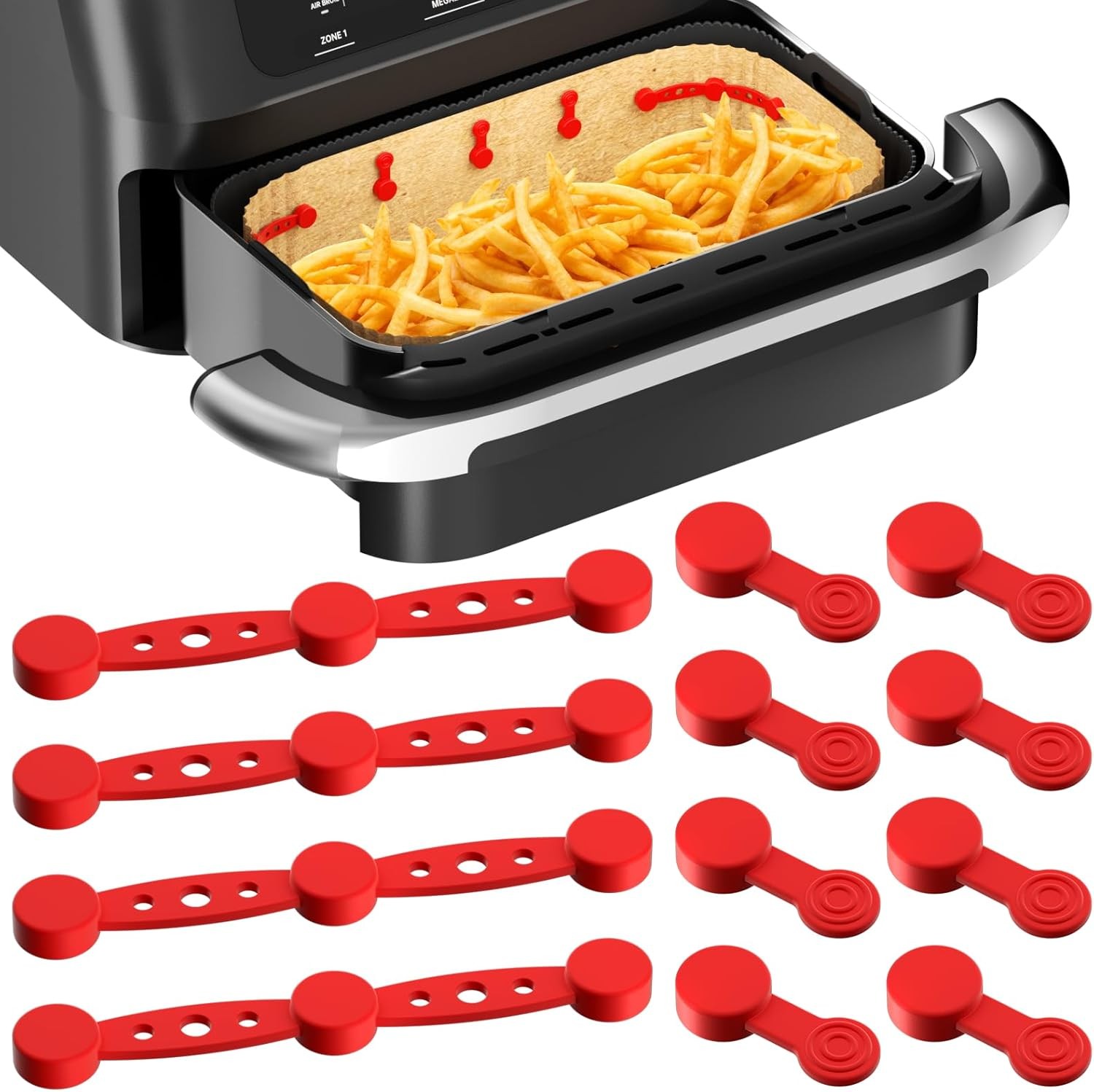 Air Fryer Silicone Magnet Clips (Upgraded Red) - Heat-Resistant Safety Buckles to Secure Parchment Liners | Prevent Paper Burning & Food Covering | Universal Fit for All Iron-Basket Models (Red-4pcs)