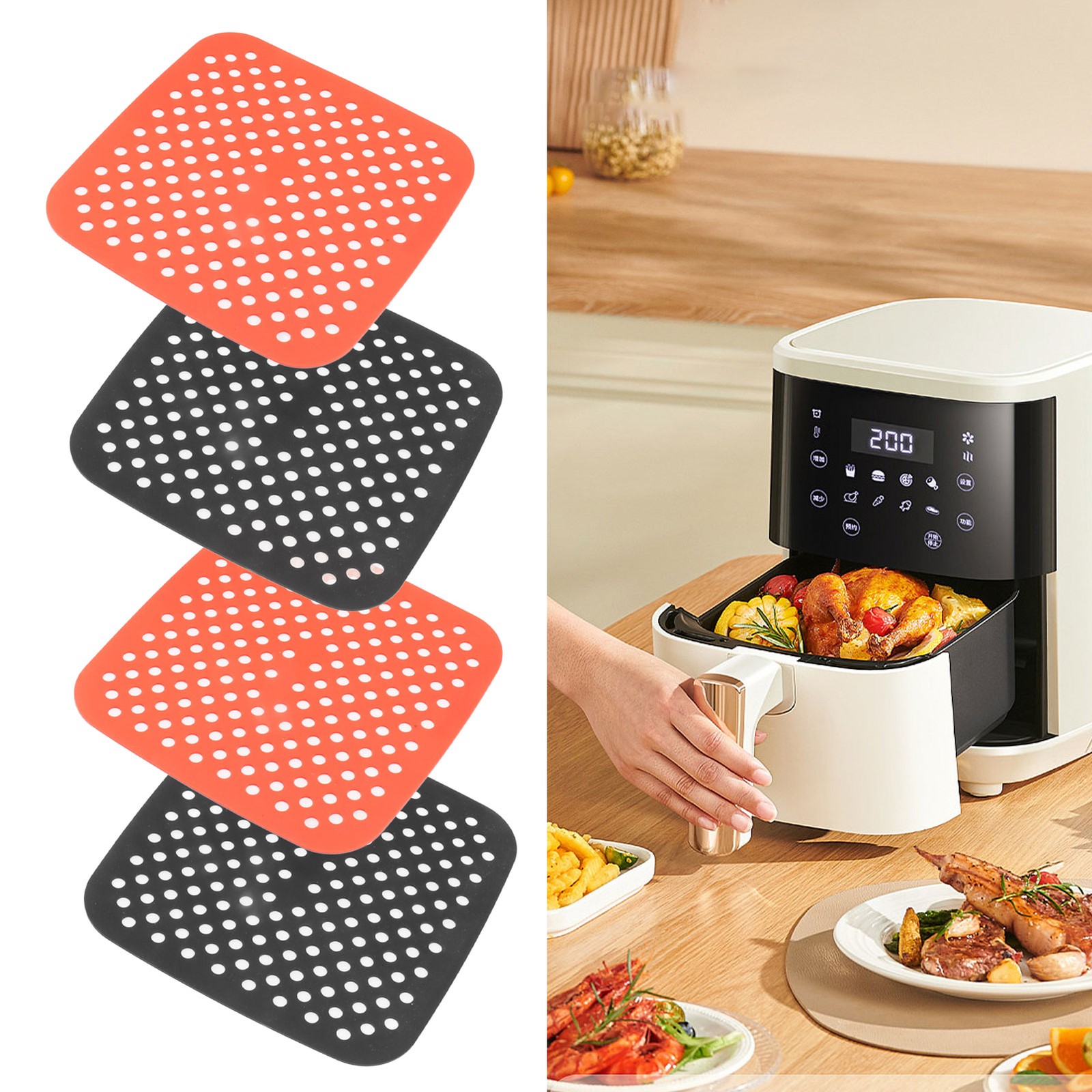 (Red Black 4pcs 21cm/8.3in)Reusable Air Fryer Mats Stick Proof Dishwasher HG
