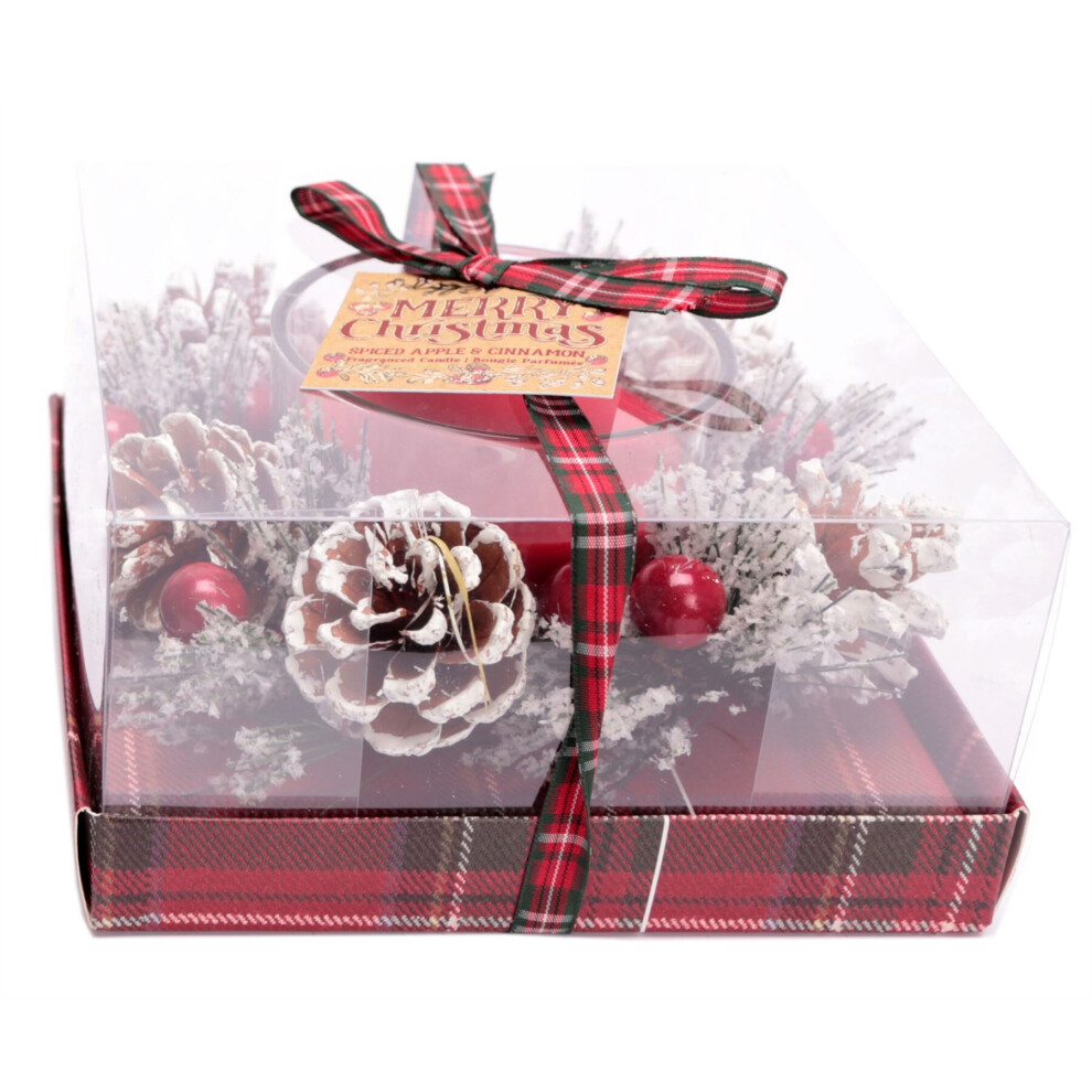 Christmas Wreath Scented Fragranced Candle Pot Ornament ~ Xmas Table Centrepiece Decoration ~ Red Wax - Spiced Apple & Cinnamon