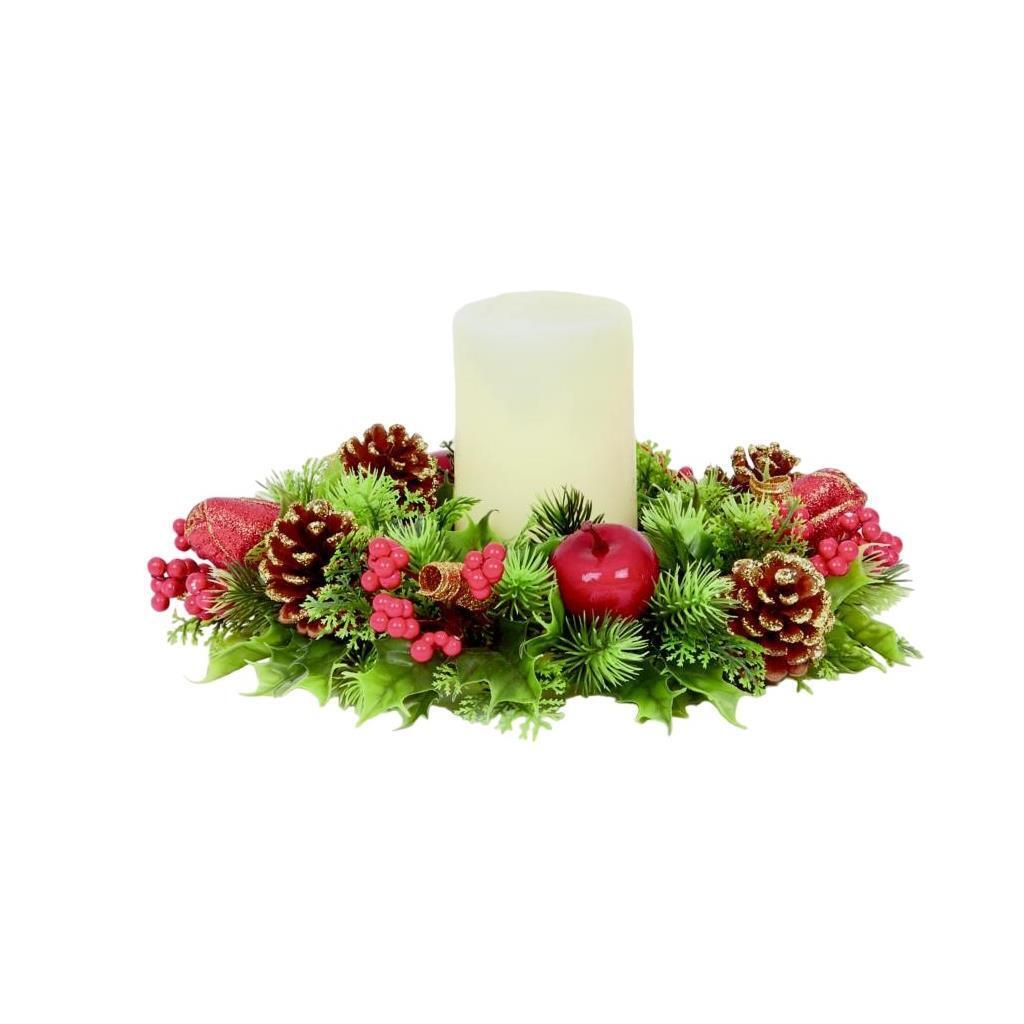 Christmas Candle Ring Wreath Artificial Apple Berries Red Gold Glitter 30cm