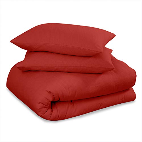 AMWAN Brick Red Duvet Cover Twin Knitted Cotton Solid Color Bedding Set Simple Style Jersey Knit Cotton Comforter Cover Solid Red Bedding Collection 1 Duvet Cover with 2 Pillowcases Twin