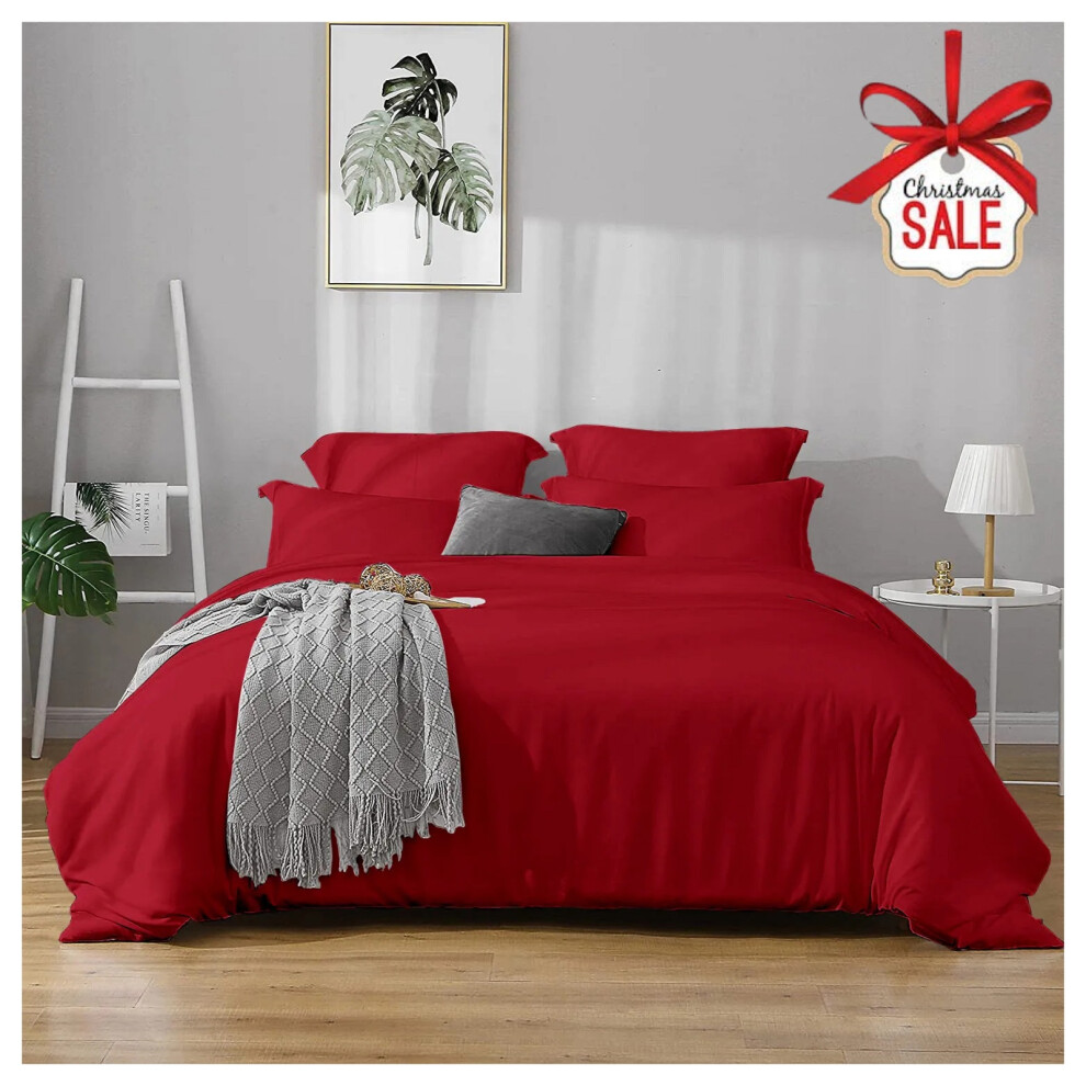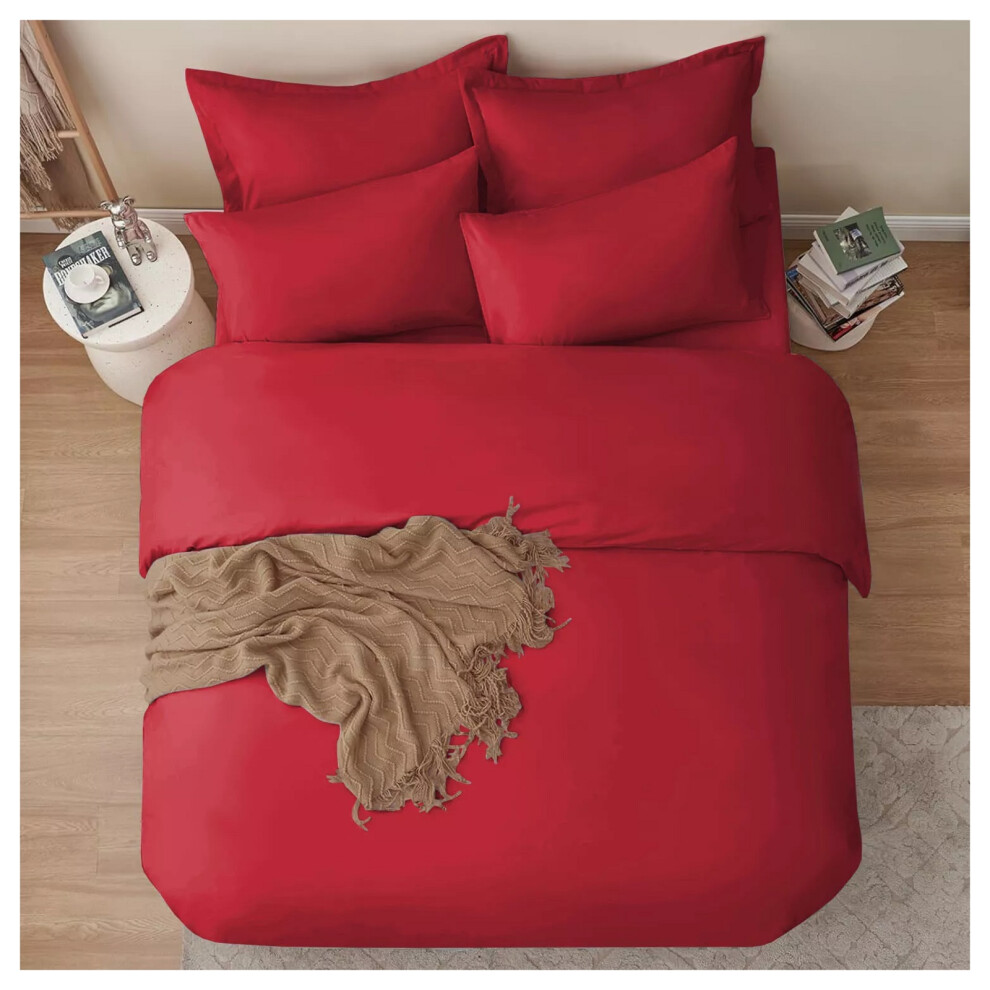 (Plain- S.King Duvet Cover Set) Reversible Duvet Quilt Cover Red Bedding Sets