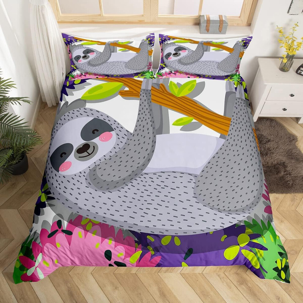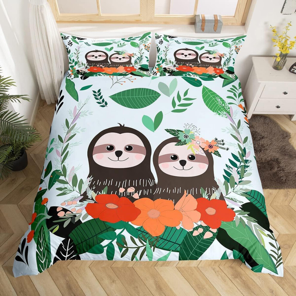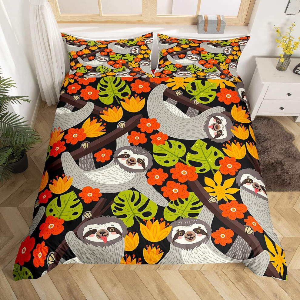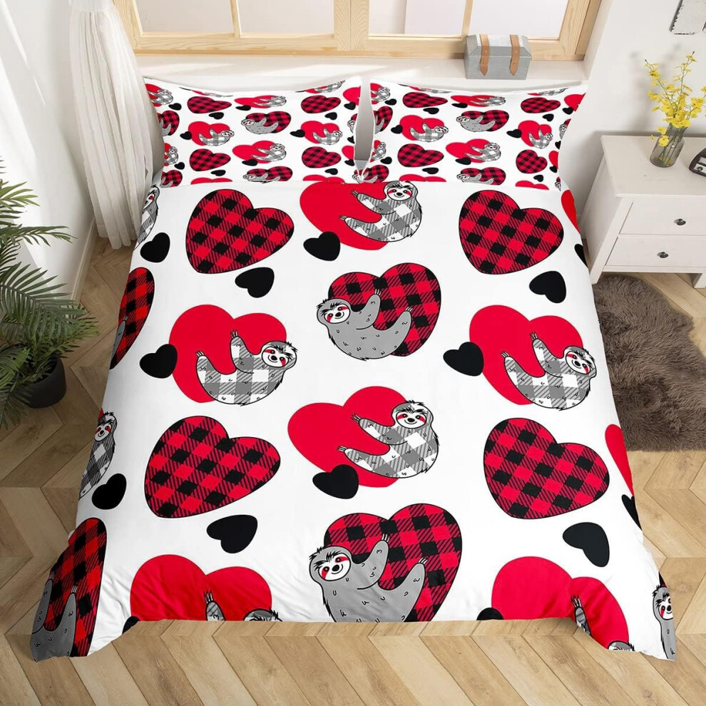 (Multi 07, Double(No Comforter)) Homewish Grey Sloth Duvet Cover Love Heart-Shaped Black Red Buffalo Checked Bedding Set Double Size Chequer Cartoon A